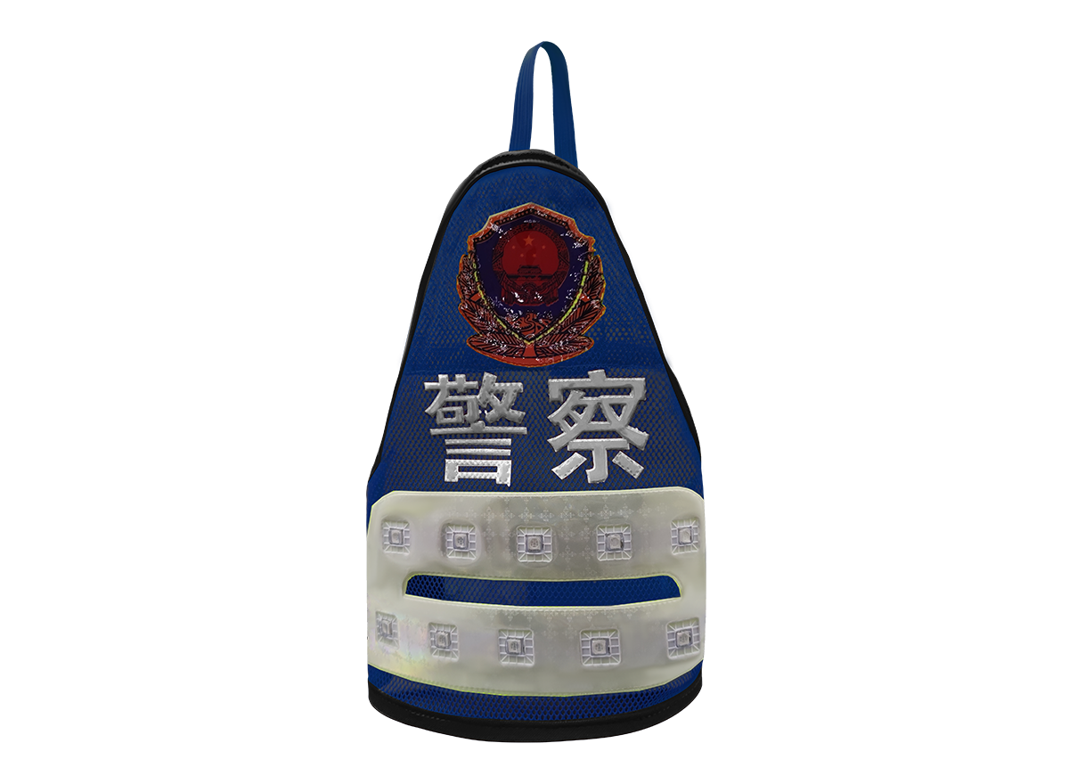 材料:涤纶网布,白色晶格反光片,5个红色5050LED红光贴片灯, 5个蓝色5050LED贴片灯
